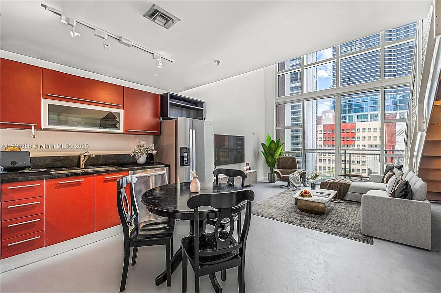 Это двухуровневый лофт Майами, кондо с высокими потолками Майами, кондо с курортным бассейном, 1 спальня лофт Даунтаун Майами.
